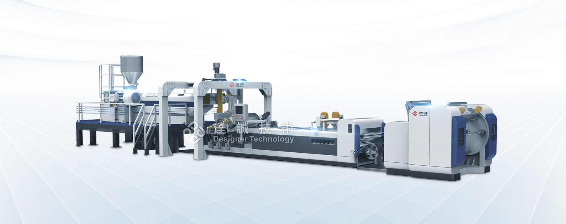 擠出機配備熔體計量泵定量穩(wěn)壓輸出,并且設備壓力與速度閉環(huán)自動控制。